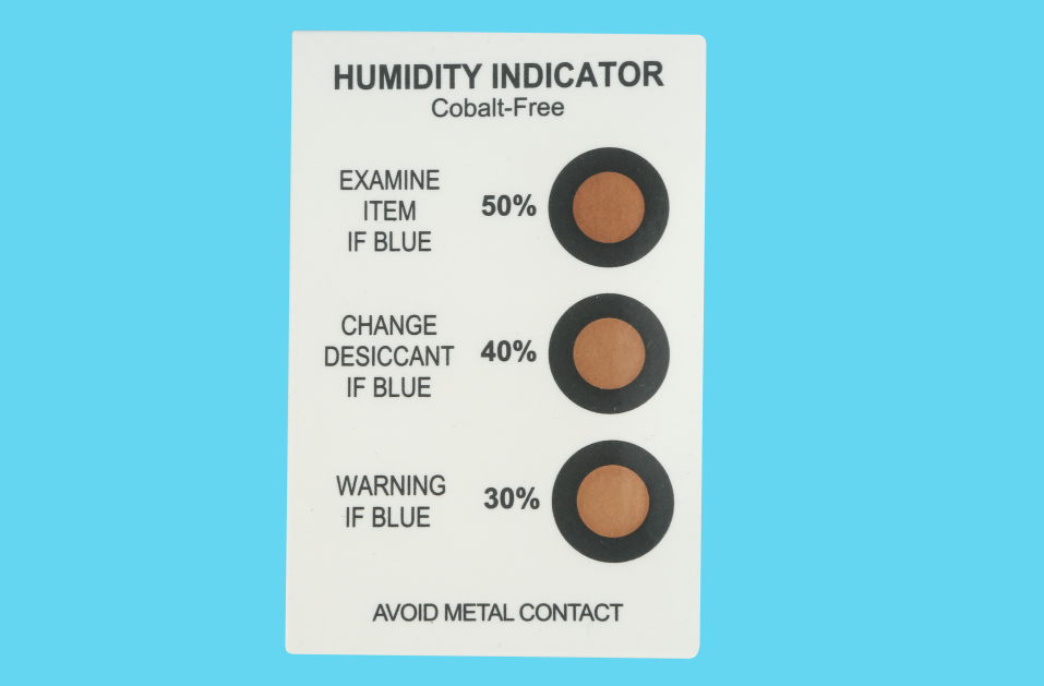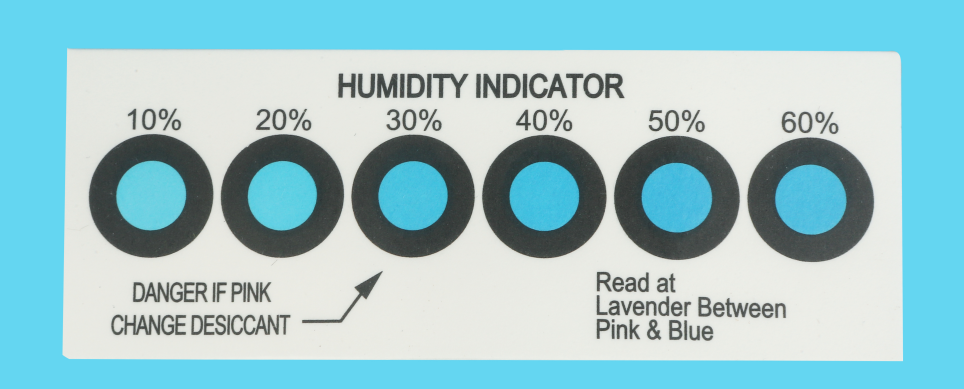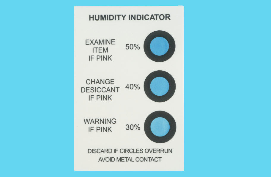 大部分的电子元器件、精密光学部件等高端电子、仪器设备容易受到湿气的影响导致产品锈蚀、灵敏度降低甚至导致不可恢复的损坏。为避免产品受到湿气的侵蚀及损坏,大部分产品会采用防潮包装组合,在最后成品及半成品的包装阶段对产品进行保护,而湿度显示卡就是便捷、经济的检测湿度是否在受控范围的物料,当打开密封袋,湿度卡上的颜色显示读出的数据就可以作为监察密封包装内的湿度是否在规定的湿度范围之内的依据,同时,也能间接反映出密封包装内的干燥剂是否发挥吸潮效果。
